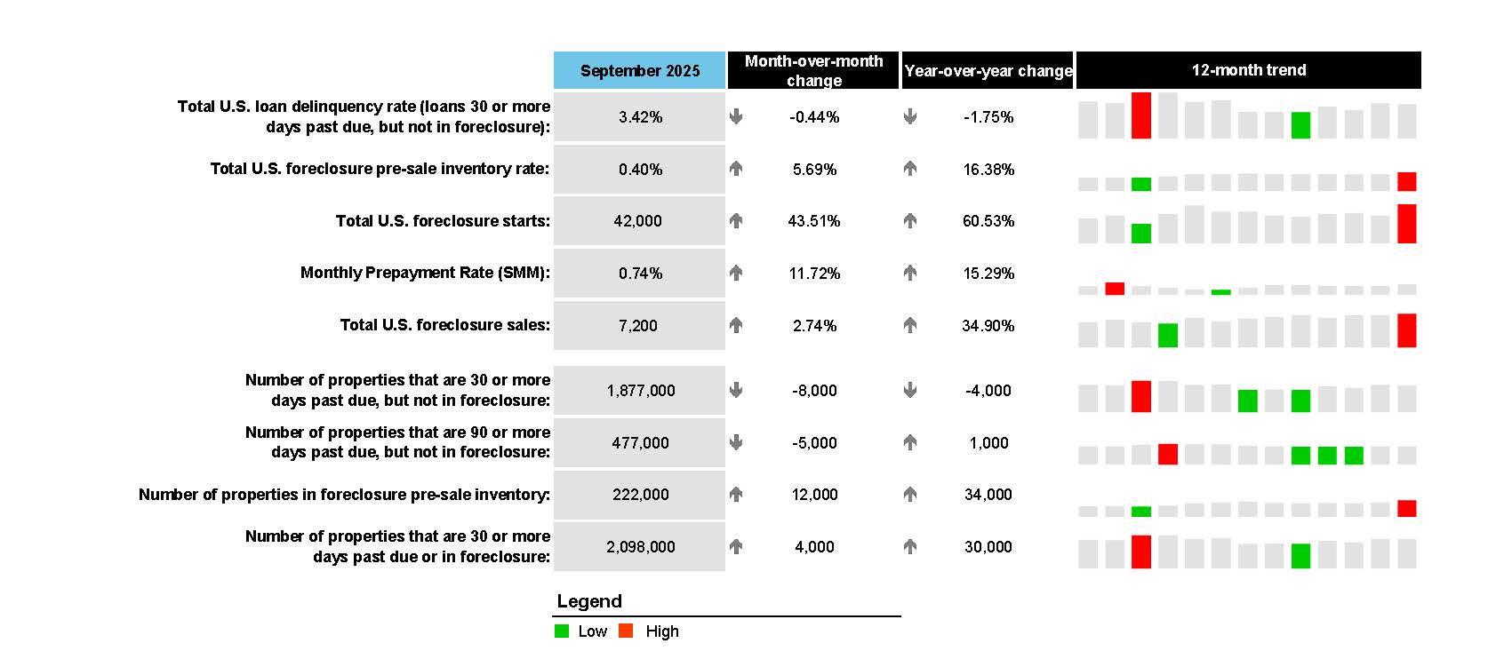ATLANTA and NEW YORK – Oct. 24, 2025 – ICE Mortgage Technology, a neutral provider of a robust end-to-end mortgage platform and part of Intercontinental Exchange, Inc. (NYSE: ICE), and one of the leading providers of mortgage data, today released the September 2025 ICE First Look at mortgage delinquency, foreclosure and prepayment trends.