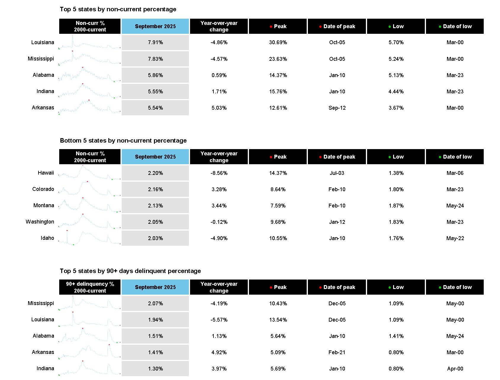 “The mortgage market remains remarkably resilient, with mortgage performance continuing to hold up well,” said Andy Walden, Head of Mortgage and Housing Market Research at ICE. “Delinquency rates improved in September, and even as we see increases in activity among FHA loans, we’re largely returning to more typical levels following several years of artificially low foreclosure volumes.”